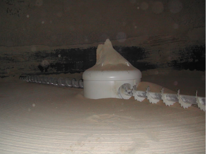 物料:豆粕,容重:0.65g/cm3;仓型直径:12米,产量:307m³/h,数量:一期10座,二期:5座