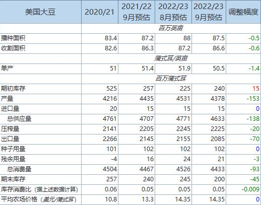 北京时间9月13日凌晨美国农业部(USDA)公布的9月供需报告数据显示: