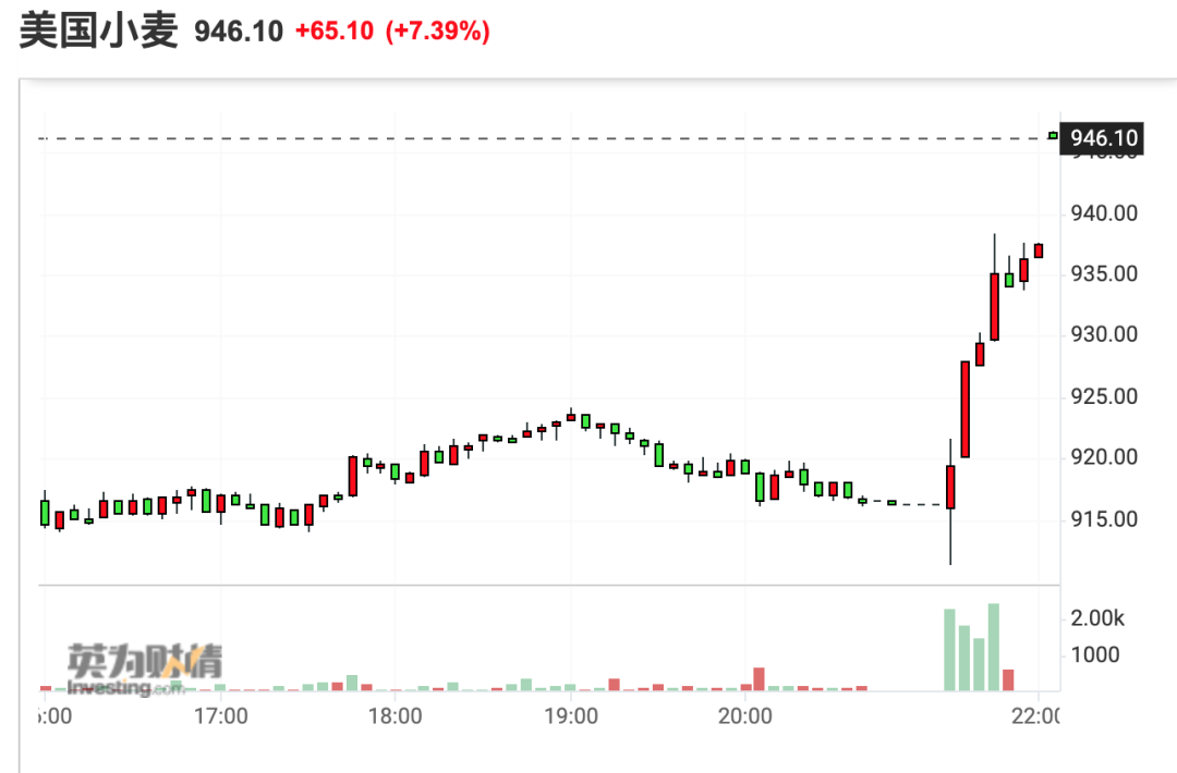 俄乌冲突升级引发供应担忧 美国小麦期货价格大涨逾7%